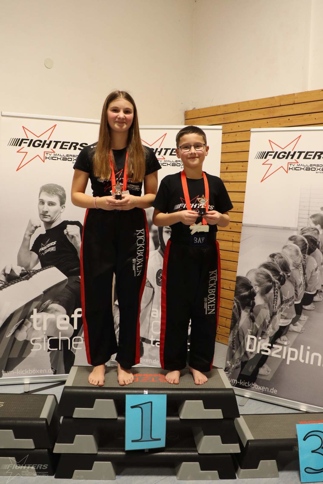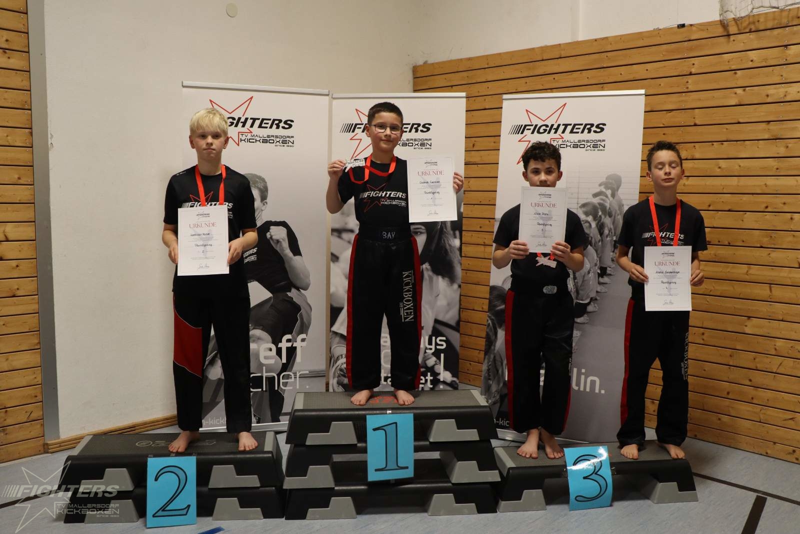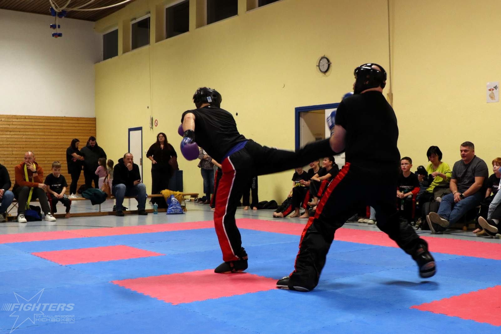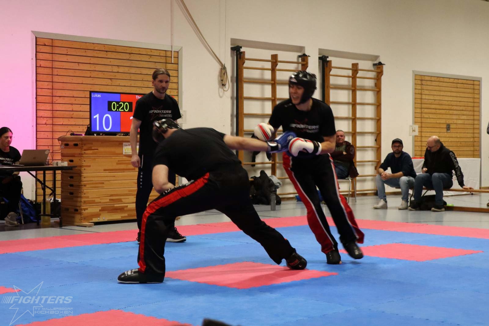 Zu Beginn starteten die kleinsten der Kickbox-Familie in der Kategorie Rumble. Diese Disziplin wurde vereinsintern eingeführt und ist für Anfänger mit wenig Erfahrung auf der Kampfmatte besonders gut geeignet, um spielerisch das späterer Wettkampfgeschehen kennen zu lernen. Dabei ist es das Ziel, dem Gegner am Hosenbund befestigte Bänder vor Ablauf der regulären Kampfzeit schneller abzunehmen, als dieser es bei einem selbst schafft. Hier setzte sich Felix Wolf in der Kategorie Rumble Kids mixed -130 cm vor Konstantin Kammermeier durch. Ihm gleich tat es Louise Graf in der Rumble-Kategorie der Kids -140 cm. Auf Platz zwei landete Josef Drescher, dicht gefolgt von Luis Fiefeck auf Platz drei. In der nächsthöheren Klasse der Jugend +140 cm setzte sich in einem spannenden Finale das Nachwuchstalent Katharina Keilbach vor Lukas David auf Platz eins. Auf Platz drei landet Johannes Zimmerer, gefolgt von Christine Heuke. In der nächsthöheren Klasse starteten die Pointfighting Newcomer Julia und Emil Strasser. Auch wenn beide Kämpfer noch neu im Wettkampfgeschehen sind, legten sie einen spannenden Kampf an den Tag, welcher sich letztendlich zugunsten von Julia Strasser entschied. In der Klasse der erfahrenen Wettkämpfer der männlichen Jugend Pointfighting setzte sich nach einem spannenden Schlagaustausch Gabriel Czenkner im Finale gegen Korbinian Röder durch. Nico Stolz konnte den Kampf um Platz drei gegen Niklas Landendinger für sich entscheiden. Ebenfalls die Goldmedaille erkämpfte sich in beeindruckender Manier Pia Grasmüller. Mit schnellen Faustangriffen und gezielten Fußtechniken gewann Grasmüller das Finale gegen ihre Mitstreiterin Maja Czenkner in der Klasse der weiblichen Jugend. Im Pointfighting der Elite Herren traten sich Thomas Rittner, Lukas Lichtenegger und Sebastian Höflinger gegenüber, wobei sich Abteilungsleiter Höflinger in beiden Kämpfen klar an die Spitze setzen konnte. Rittner belegt Platz zwei, dicht gefolgt von Lichtenegger auf Platz drei. Auch in der Disziplin Leichtkontakt erkämpften sich die beiden Elite Sportler Rittner und Lichtenegger Punkt für Punkt, wobei letzterer den Kampf um die Leichtkontakt-Vereinsmeisterkrone letztendlich für sich entscheiden konnte.