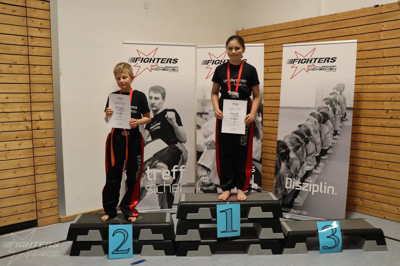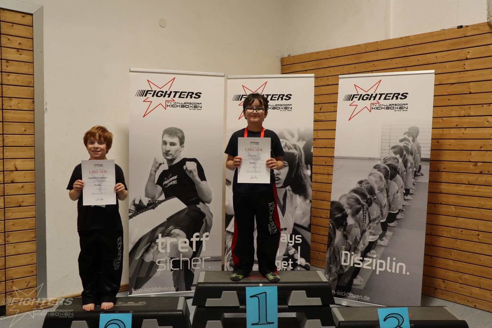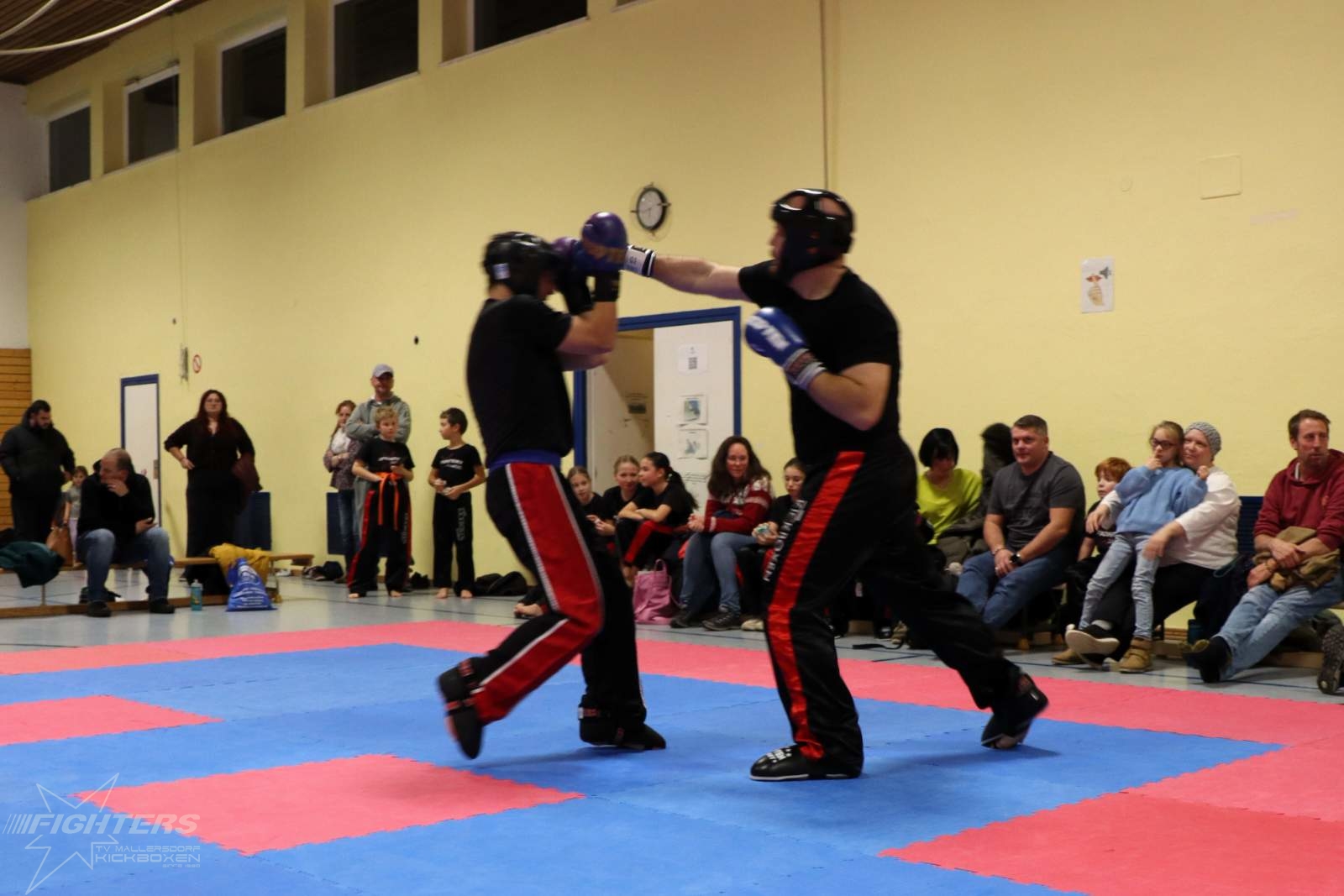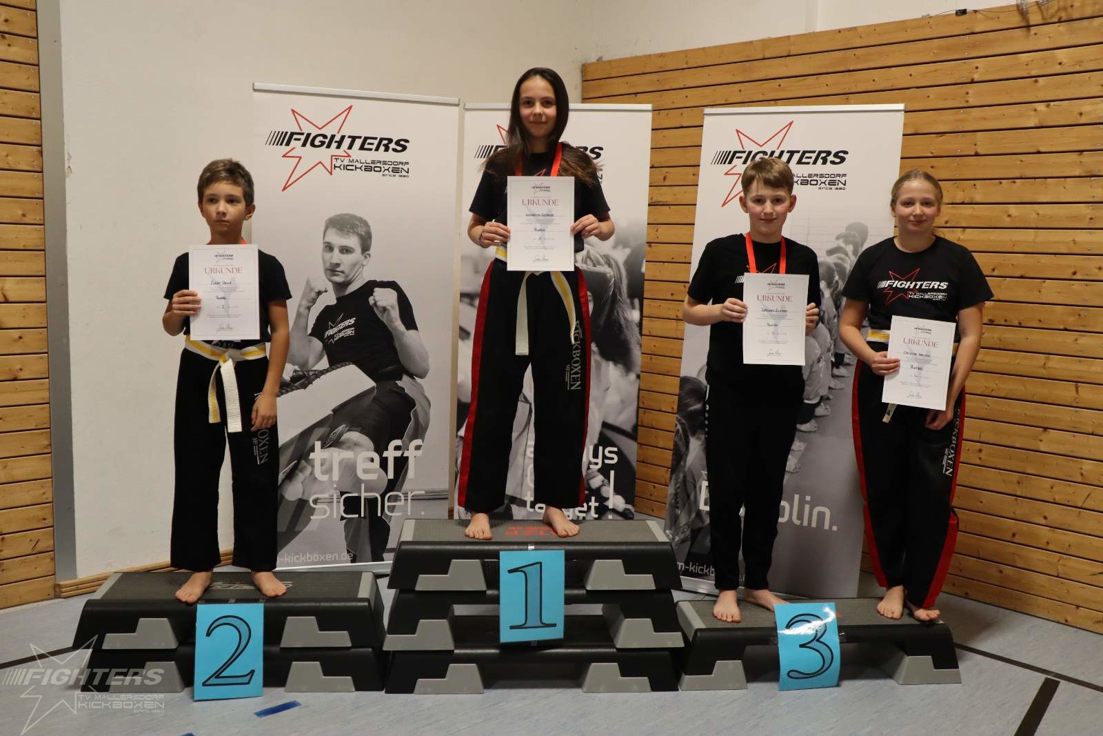 Zu Beginn starteten die kleinsten der Kickbox-Familie in der Kategorie Rumble. Diese Disziplin wurde vereinsintern eingeführt und ist für Anfänger mit wenig Erfahrung auf der Kampfmatte besonders gut geeignet, um spielerisch das späterer Wettkampfgeschehen kennen zu lernen. Dabei ist es das Ziel, dem Gegner am Hosenbund befestigte Bänder vor Ablauf der regulären Kampfzeit schneller abzunehmen, als dieser es bei einem selbst schafft. Hier setzte sich Felix Wolf in der Kategorie Rumble Kids mixed -130 cm vor Konstantin Kammermeier durch. Ihm gleich tat es Louise Graf in der Rumble-Kategorie der Kids -140 cm. Auf Platz zwei landete Josef Drescher, dicht gefolgt von Luis Fiefeck auf Platz drei. In der nächsthöheren Klasse der Jugend +140 cm setzte sich in einem spannenden Finale das Nachwuchstalent Katharina Keilbach vor Lukas David auf Platz eins. Auf Platz drei landet Johannes Zimmerer, gefolgt von Christine Heuke. In der nächsthöheren Klasse starteten die Pointfighting Newcomer Julia und Emil Strasser. Auch wenn beide Kämpfer noch neu im Wettkampfgeschehen sind, legten sie einen spannenden Kampf an den Tag, welcher sich letztendlich zugunsten von Julia Strasser entschied. In der Klasse der erfahrenen Wettkämpfer der männlichen Jugend Pointfighting setzte sich nach einem spannenden Schlagaustausch Gabriel Czenkner im Finale gegen Korbinian Röder durch. Nico Stolz konnte den Kampf um Platz drei gegen Niklas Landendinger für sich entscheiden. Ebenfalls die Goldmedaille erkämpfte sich in beeindruckender Manier Pia Grasmüller. Mit schnellen Faustangriffen und gezielten Fußtechniken gewann Grasmüller das Finale gegen ihre Mitstreiterin Maja Czenkner in der Klasse der weiblichen Jugend. Im Pointfighting der Elite Herren traten sich Thomas Rittner, Lukas Lichtenegger und Sebastian Höflinger gegenüber, wobei sich Abteilungsleiter Höflinger in beiden Kämpfen klar an die Spitze setzen konnte. Rittner belegt Platz zwei, dicht gefolgt von Lichtenegger auf Platz drei. Auch in der Disziplin Leichtkontakt erkämpften sich die beiden Elite Sportler Rittner und Lichtenegger Punkt für Punkt, wobei letzterer den Kampf um die Leichtkontakt-Vereinsmeisterkrone letztendlich für sich entscheiden konnte.