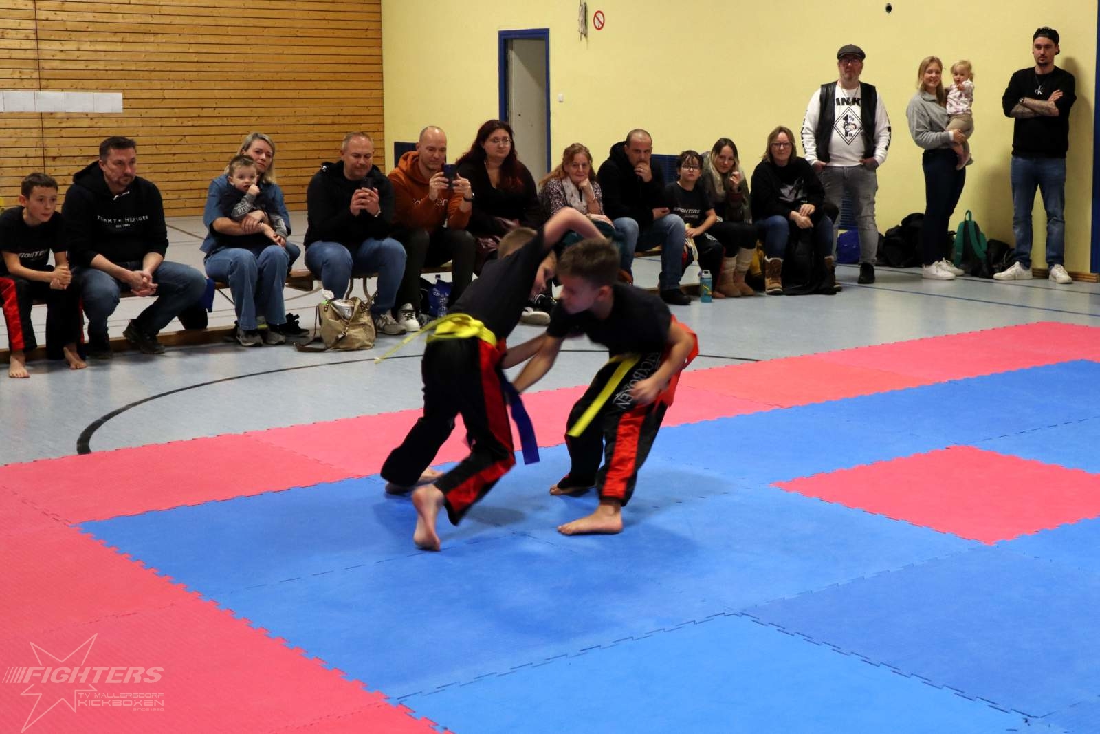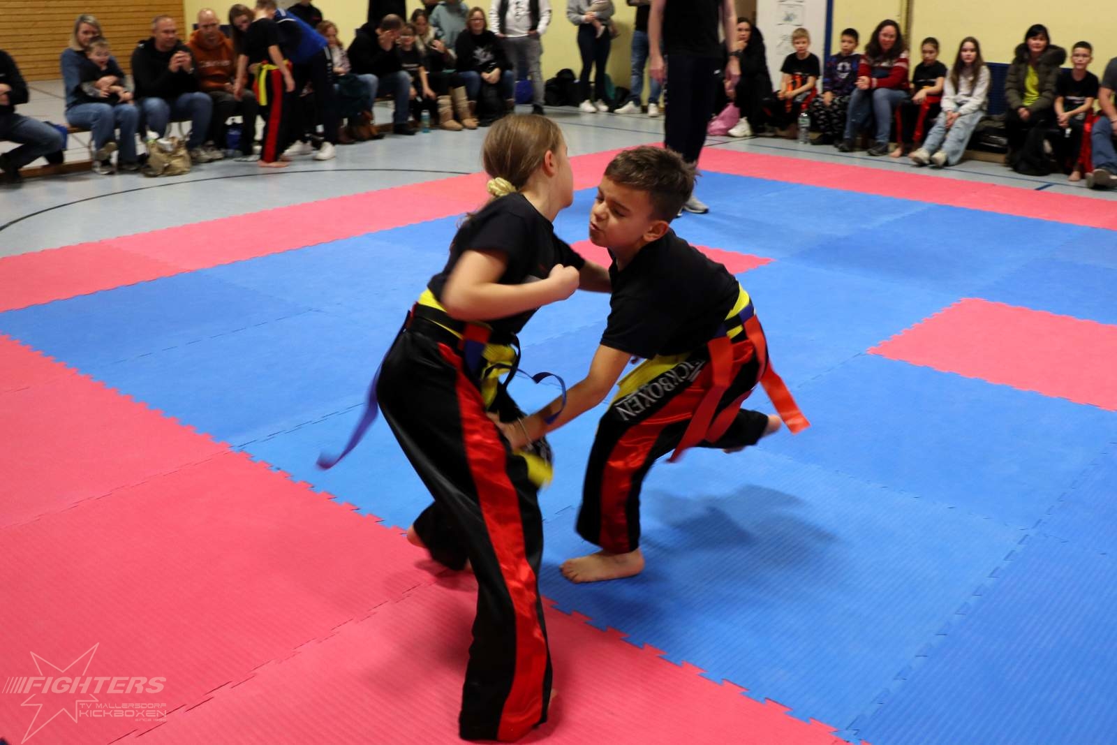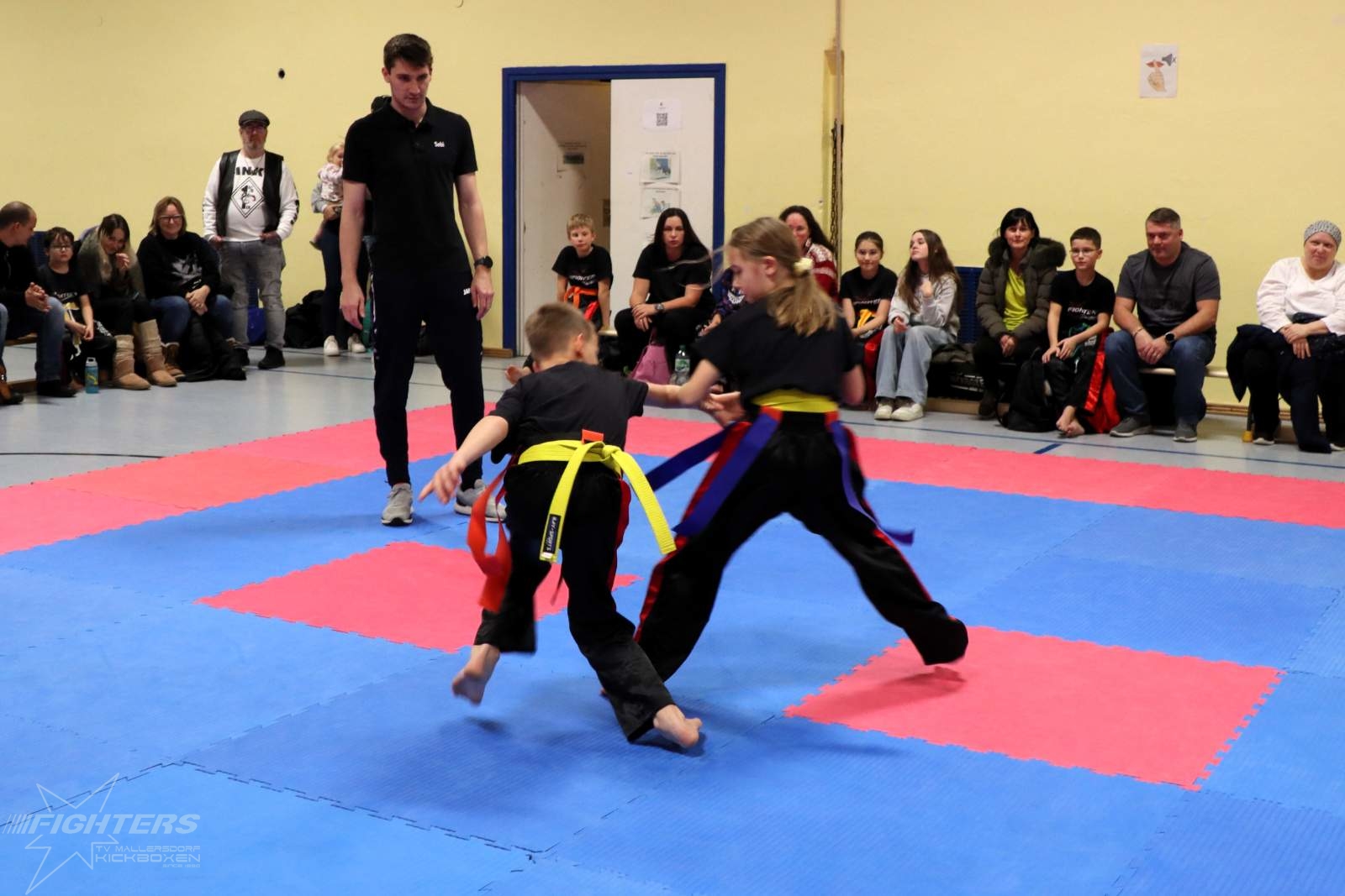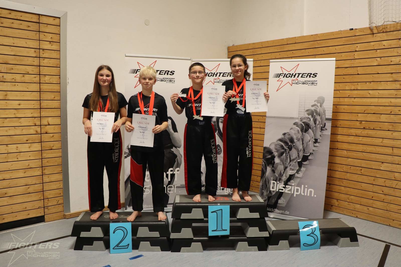 Zu Beginn starteten die kleinsten der Kickbox-Familie in der Kategorie Rumble. Diese Disziplin wurde vereinsintern eingeführt und ist für Anfänger mit wenig Erfahrung auf der Kampfmatte besonders gut geeignet, um spielerisch das späterer Wettkampfgeschehen kennen zu lernen. Dabei ist es das Ziel, dem Gegner am Hosenbund befestigte Bänder vor Ablauf der regulären Kampfzeit schneller abzunehmen, als dieser es bei einem selbst schafft. Hier setzte sich Felix Wolf in der Kategorie Rumble Kids mixed -130 cm vor Konstantin Kammermeier durch. Ihm gleich tat es Louise Graf in der Rumble-Kategorie der Kids -140 cm. Auf Platz zwei landete Josef Drescher, dicht gefolgt von Luis Fiefeck auf Platz drei. In der nächsthöheren Klasse der Jugend +140 cm setzte sich in einem spannenden Finale das Nachwuchstalent Katharina Keilbach vor Lukas David auf Platz eins. Auf Platz drei landet Johannes Zimmerer, gefolgt von Christine Heuke. In der nächsthöheren Klasse starteten die Pointfighting Newcomer Julia und Emil Strasser. Auch wenn beide Kämpfer noch neu im Wettkampfgeschehen sind, legten sie einen spannenden Kampf an den Tag, welcher sich letztendlich zugunsten von Julia Strasser entschied. In der Klasse der erfahrenen Wettkämpfer der männlichen Jugend Pointfighting setzte sich nach einem spannenden Schlagaustausch Gabriel Czenkner im Finale gegen Korbinian Röder durch. Nico Stolz konnte den Kampf um Platz drei gegen Niklas Landendinger für sich entscheiden. Ebenfalls die Goldmedaille erkämpfte sich in beeindruckender Manier Pia Grasmüller. Mit schnellen Faustangriffen und gezielten Fußtechniken gewann Grasmüller das Finale gegen ihre Mitstreiterin Maja Czenkner in der Klasse der weiblichen Jugend. Im Pointfighting der Elite Herren traten sich Thomas Rittner, Lukas Lichtenegger und Sebastian Höflinger gegenüber, wobei sich Abteilungsleiter Höflinger in beiden Kämpfen klar an die Spitze setzen konnte. Rittner belegt Platz zwei, dicht gefolgt von Lichtenegger auf Platz drei. Auch in der Disziplin Leichtkontakt erkämpften sich die beiden Elite Sportler Rittner und Lichtenegger Punkt für Punkt, wobei letzterer den Kampf um die Leichtkontakt-Vereinsmeisterkrone letztendlich für sich entscheiden konnte.