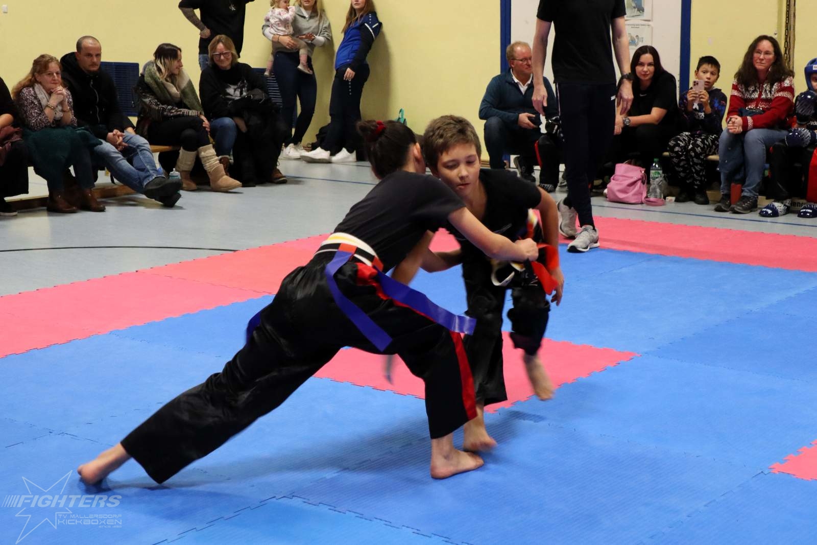 Mit Freude erwartete man gespannt das Highlight des Abends, den Tag-Team Kampf der Nachwuchskämpfer. Hier kämpfen pro Team jeweils zwei Kämpfer gegen ein anderes Team, und wer nach Ablauf der Kampfzeit mehr Punkte auf dem Konto hat, darf die Goldmedaillen für sich beanspruchen. Wie bereits im Vorjahr trat das Geschwisterpaar Gabriel und Maja Czenkner unter dem Teamnamen ‚Lucky Punch‘ an und stand dem Team ‚Miahamkoannam‘, bestehend aus Pia Grasmüller und Korbinian Röder, gegenüber. In einem fliegenden Wechsel fielen die Punkte auf beiden Seiten, und nach Ablauf der Kampfzeit von vier Minuten entschied der Punktestand zugunsten des Geschwisterpaars Czenkner. Pia Grasmüller und Gabriel Czenkner wurde zum Abschluss des Tages eine besondere Auszeichnung zu Teil. Sie wurden aufgrund ihres kämpferischen Talents, ihres Trainingsfleißes und ihrer beeindruckend ausgeführten Techniken als „Beste Technikerin“ bzw. als „Bester Techniker“ ausgezeichnet.