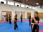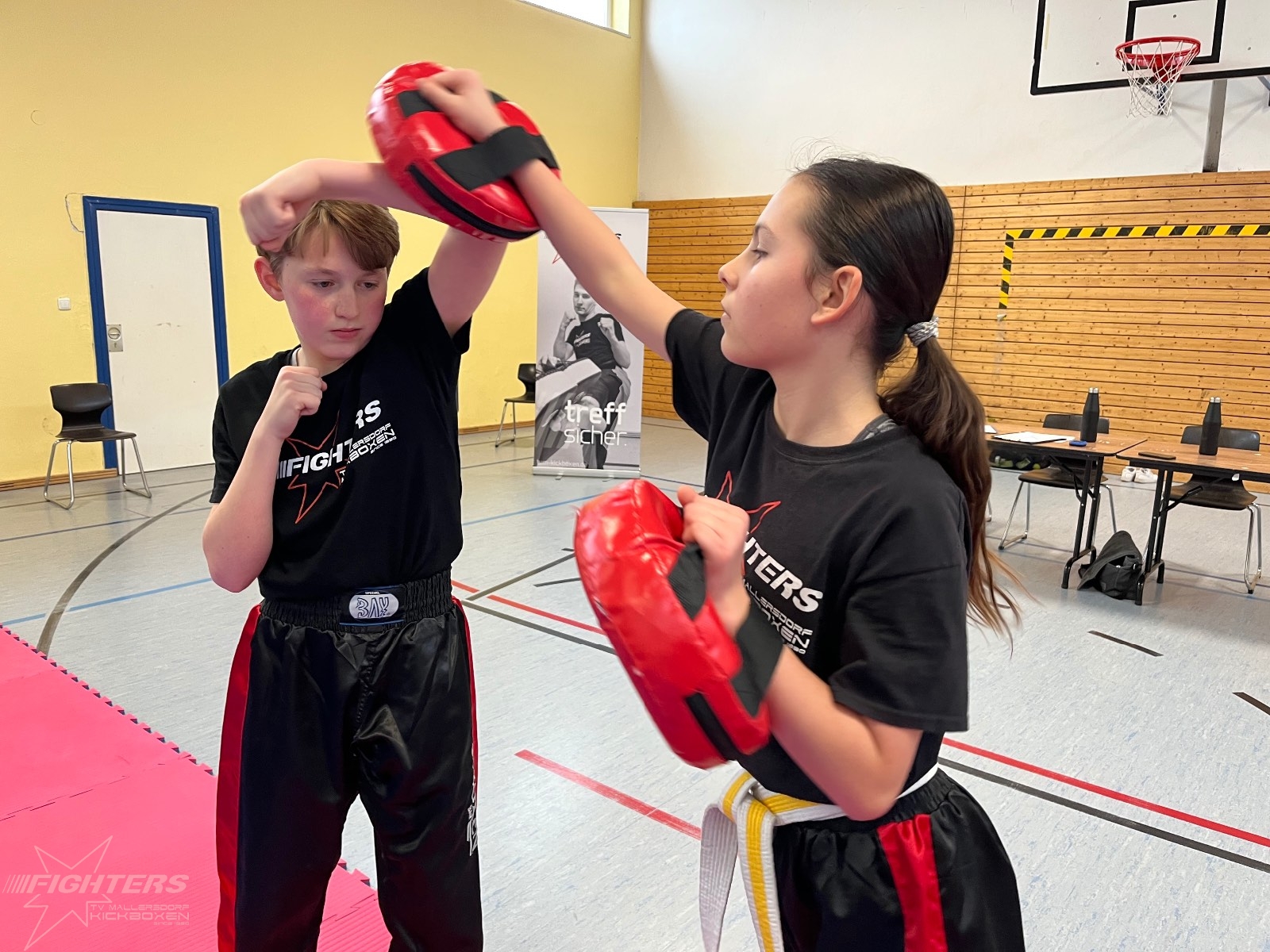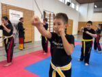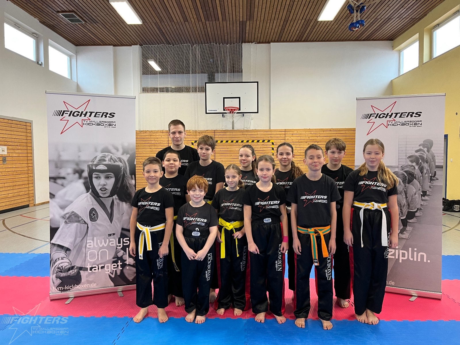 12 Prüflinge stellten sich am vergangenen Wochenende dem Prüfungskomitee bei der alljährlichen Wintergürtelprüfung in Mallersdorf. Unter der Prüfungsaufsicht von Dr. Simon Völkl absolvierten die Gürtelanwärter eine mehrstündige, schweißtreibende Prüfung unter den Augen der vierköpfigen Prüfungskommission, zudem bestehend aus Anna-Lena Heinrich, Katrin Dobmeier und Paula Grasmüller. Nach dem Regelwerk des Bundesverbandes für Kickboxen mussten die Gürtelanwärter neben einem anspruchsvollen Technik-Teil, welcher präzise ausgeführte Hand- und Fußtechniken voraussetzt, unter anderem ihr Durchhaltevermögen im Konditionsteil unter Beweis stellen. Auch auf der Kampfmatte war sowohl in der Disziplin Pointfighting, als auch im Leichtkontakt kämpferisches Feingefühl und eine saubere Ausführung der im Training erlernten Kampftechniken unter Beweis zu stellen. Herausragende Leistungen zeigte dabei Katharina Keilbach und Richard Hajdu. Mit einwandfreien Techniken, außergewöhnlicher Kondition und starkem Kampfgeist überzeugten sie das Trainerteam in besonderem Maße. Für ihren Trainingsfleiß und ihre exzellente Leistung wurden sie als „Prüfungsbeste“ bzw. „Prüfungsbester“ ausgezeichnet und erhielten einen Wertgutschein für Kampfsportartikel. Auch die übrigen Prüflinge meisterten die Anforderungen mit Bravour und durften sich am Ende des Tages über den wohlverdienten neuen Gürtel freuen.